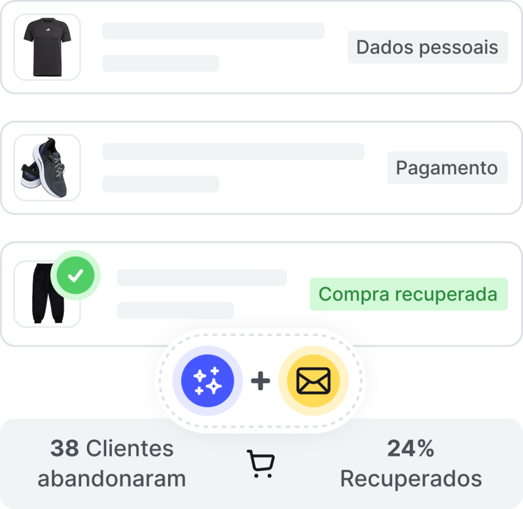 Recupere vendas com nosso e-mail inteligente de remarketing para quem abandonou o checkout.